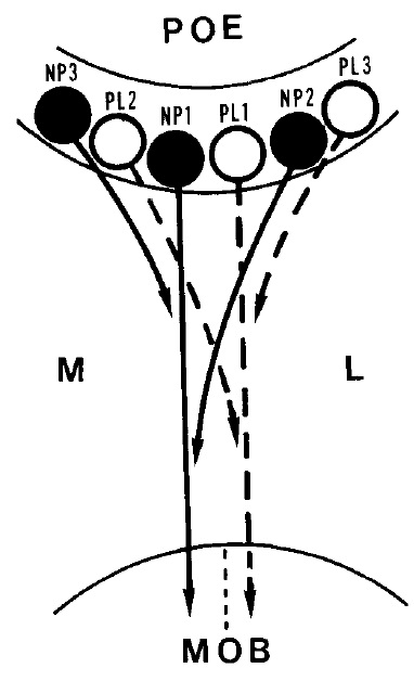 within the main olfactory bulb (MOB). NP2, NP3 and PL2, PL3