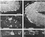 olfactory axons (small arrows) beneath the epithelium are stained with MAbB2. E, An adjacent section to the one in C was stained with MAbAS.