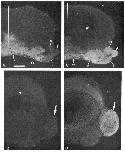 lipophilic dye Dil. A, A dorsocaudal view of the left nasal chamber (outlined by dotted lines) after the retrograde labeling of the OFB4 with the