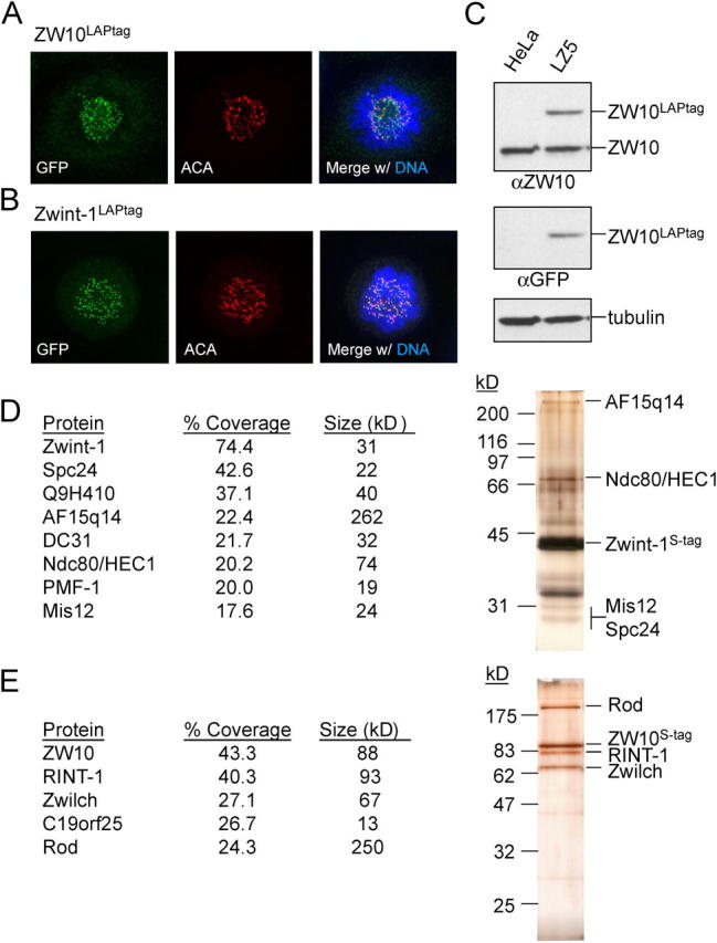 Williams, Zwilch, a new component of the ZW10/ROD complex required for kinetochore functions. 2003, Pubmed