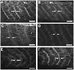 (F). Large arrows, intersomitic boundaries; small arrows, lateral membranes of myocytes; ec, ectoderm. Bars, 100 um.