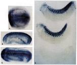 using a digoxygenin-labeled riboprobe. All embryos are oriented with their anterior end to the left. (A) Dorsal view of a stage 14