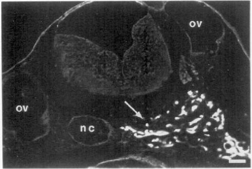 (m) on the injected left side. nc, notochord, Bars, 37 um.