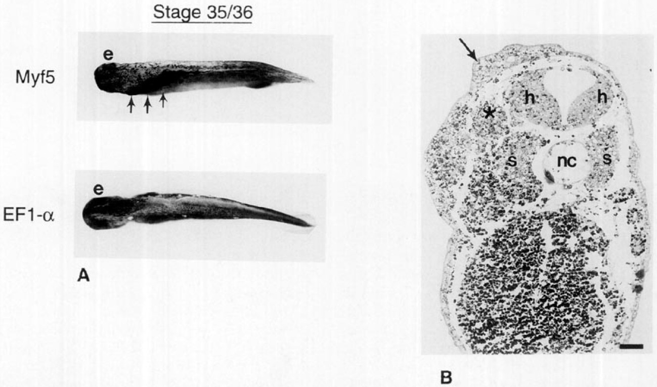 to the left/right symmetry of the EFl-a RNA-injected embryo. (B) Cross section (4 Jtm) of a XMyf5 RNA-injected (7.5 ng) stage 35/36 embryo