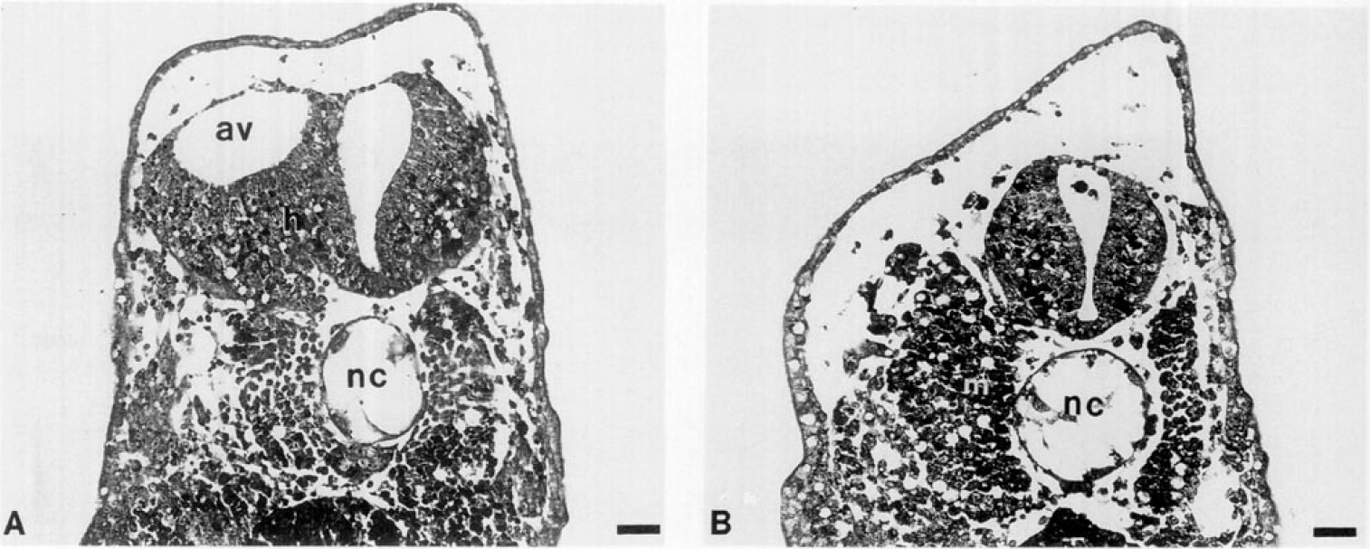 thicker skin (arrow) on the side of injection. nc, notochord. Bars,