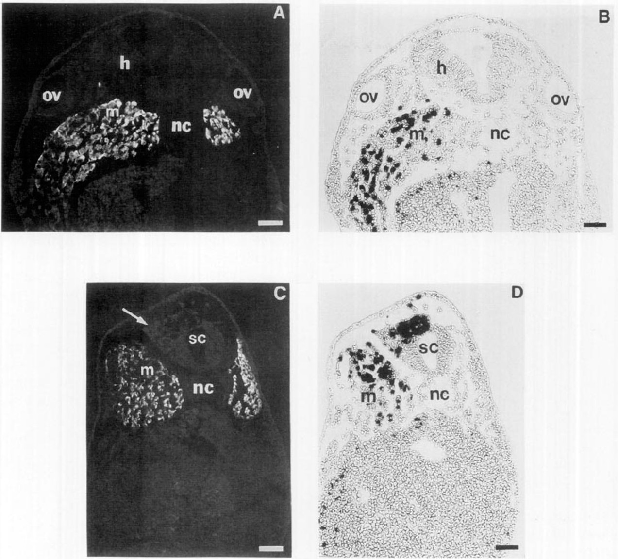 muscle antigen negative. nc, notochord. Bars, 45 um