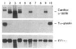 Ta globin, cardiac a-actin, and EF-la mRNAs. In lanes 1-4, RNA