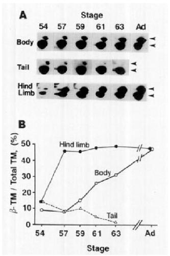 TM (top). (B) Changes in ra tios ofTM i~oforms during metamorphosis.