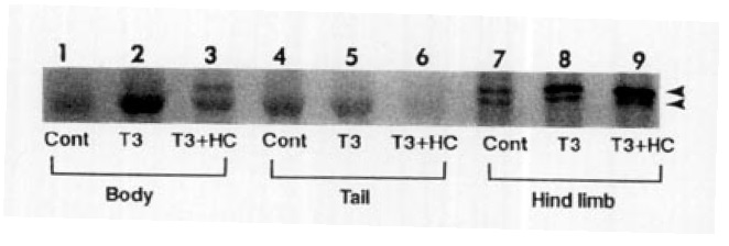 and tail. The involvement of T3 and glucocorticoid is suggested.