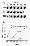 FIG. 3. (A) Developmental changes of a- and 13-TM expression. Muscle