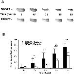Figure 8. BID overexpression accelerates tail regression. Ex vivo cultured tails in the presence of T3 (10 nM) from BIDGFP-positive and -negative siblings tadpoles killed at stage NF55. Tails were photographed at different times of T3 treatment (A) and the area of each tail was determined (B). Histogram represents quantification (Means ± SEM) of the regression of the area of eight BIDGFP positive and negative tails. *P < 0.05 **P < 0.01.Download figure to PowerPoint