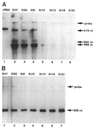 total RNA preparations used in A from stage VI oocytes (lane 1),