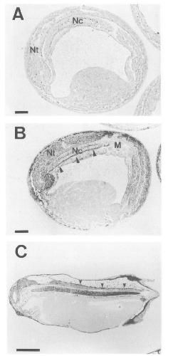 No, notochord; Nt, neural tube. Scale bars in A and B, 100 #m; in (,