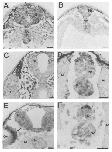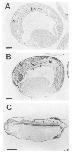 Fig. 2, Photographs showing the distribution of XT/34 mRNA in cross sections. A,B: sections of a stage-2() embryo. In the rostral region (A), an
