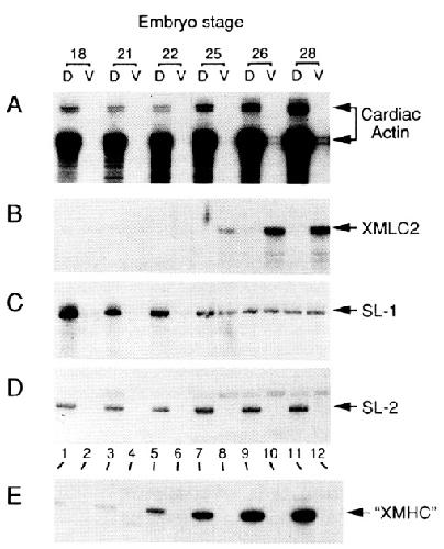 (A), SL1 (B), cardiac actin (C), and SL2 (D) transcripts. Total