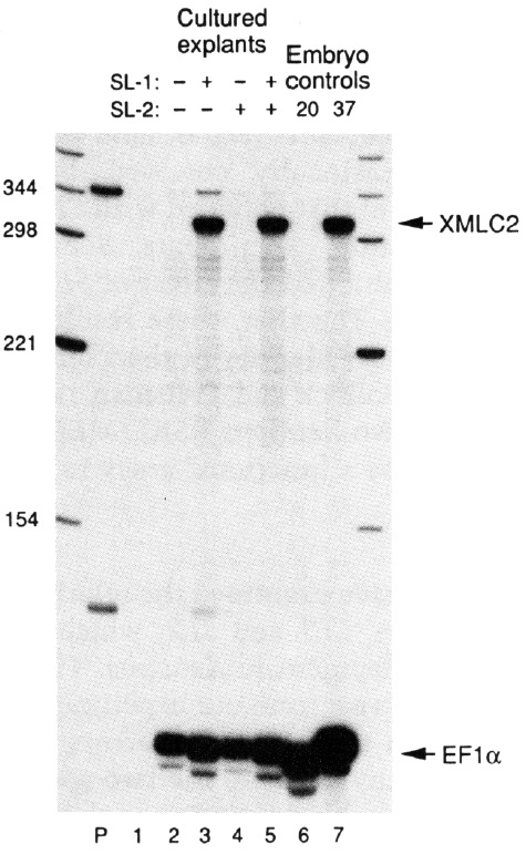 2) control explants (uninjected); (lanes 3-5) explants from embryos