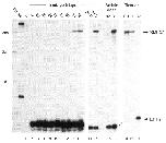 same assay. (P) Undigested probe; (lane 1) 10 ~g of tRNA; (lane