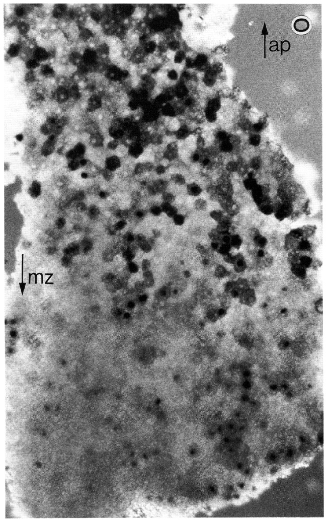 (ap) to the marginal zone (mz) of a stained, dissected gastrula