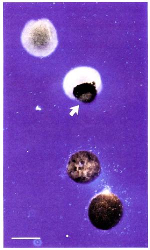PE had been nicked prior to placement in culture (arrow). The photoreceptor