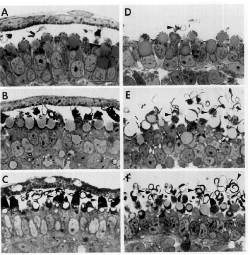 have been elaborated by either minor rods or cones. Scale bars, 1 ~m.