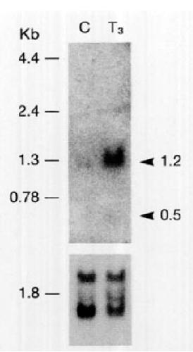 (C) of 5 nm T, (see Materials and Methods). Top: Northern blot of 10 pg