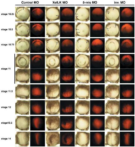 Figure 3 Involvement of XeILK in proper blastopore lip formation, blastopore closure and axis elongation. MOs (25 ng) were injected