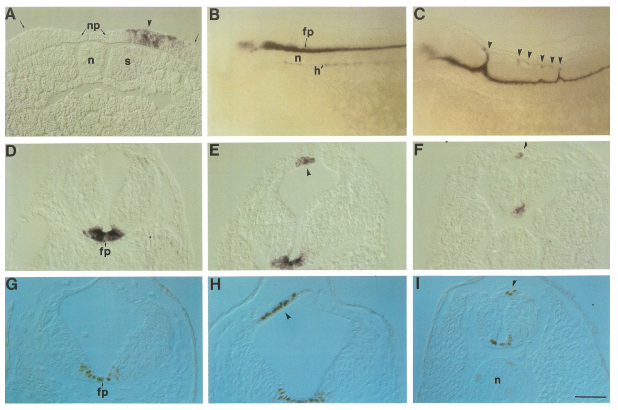 Floor plate and motor neuron induction by vhh-1, a vertebrate homolog of hedgehog expressed by the notochord.