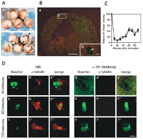 activity of Cdc2. H1 kinase activities are represented relatively. (D) Photomicrographs of sections of unfertilized eggs injected with