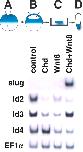 RT-PCR analysis in ectodermal explants of embryos injected with chordin and wnt8 RNA. Animal caps were dissected from the embryos injected with 100 pg of chordin (Chd) and/or 200 pg of wnt8 RNA, cultured until stage 18 and subjected to RT-PCR. Neural crest marker slug expression is induced only in the presence of both chordin and wnt8 as previously shown. Only Id3 is maintained under the neural crest-inducing conditions, while Id4 was maintained or up-regulated under neuralizing condition. EF1α expression is used as a loading control. |