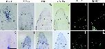 Figure 2. Myogenic marker gene expressions in the regenerating blastema. A-F: Sections of the froglet blastema that developed for 14 days after amputation. G-L: Sections of the tadpoleblastema at 5 days after amputation. A,G: Sox9 transcripts were found in the middle of the blastema. B,H: Slight myoD expression was observed only in the stump region (H) and not within the froglet blastema (B). MyoD is expressed both in the tadpoleblastema and stump region (H). C,D,I,J: Faint expressions of hgf (C)and c-met (D) were detectable in the froglet blastema, and in the tadpoleblastema, significant signals for both hgf (I) and c-met (J) were detected. E,F,K,L: Immunostainings for myosin heavy chain (MyHC) and Pax7 proteins. E,K: Pax7-positive cells were scattered in the proximal stump region (E,K), and the froglet blastema was Pax7-negative (E), although Pax7-positive cells were detected also in the tadpoleblastema (K). F,L: Anti-MyHC immunoreactivity was located only in the stump region. Scale bars = 400 mu m n A (applies to A-F), in G (applies to G-L).