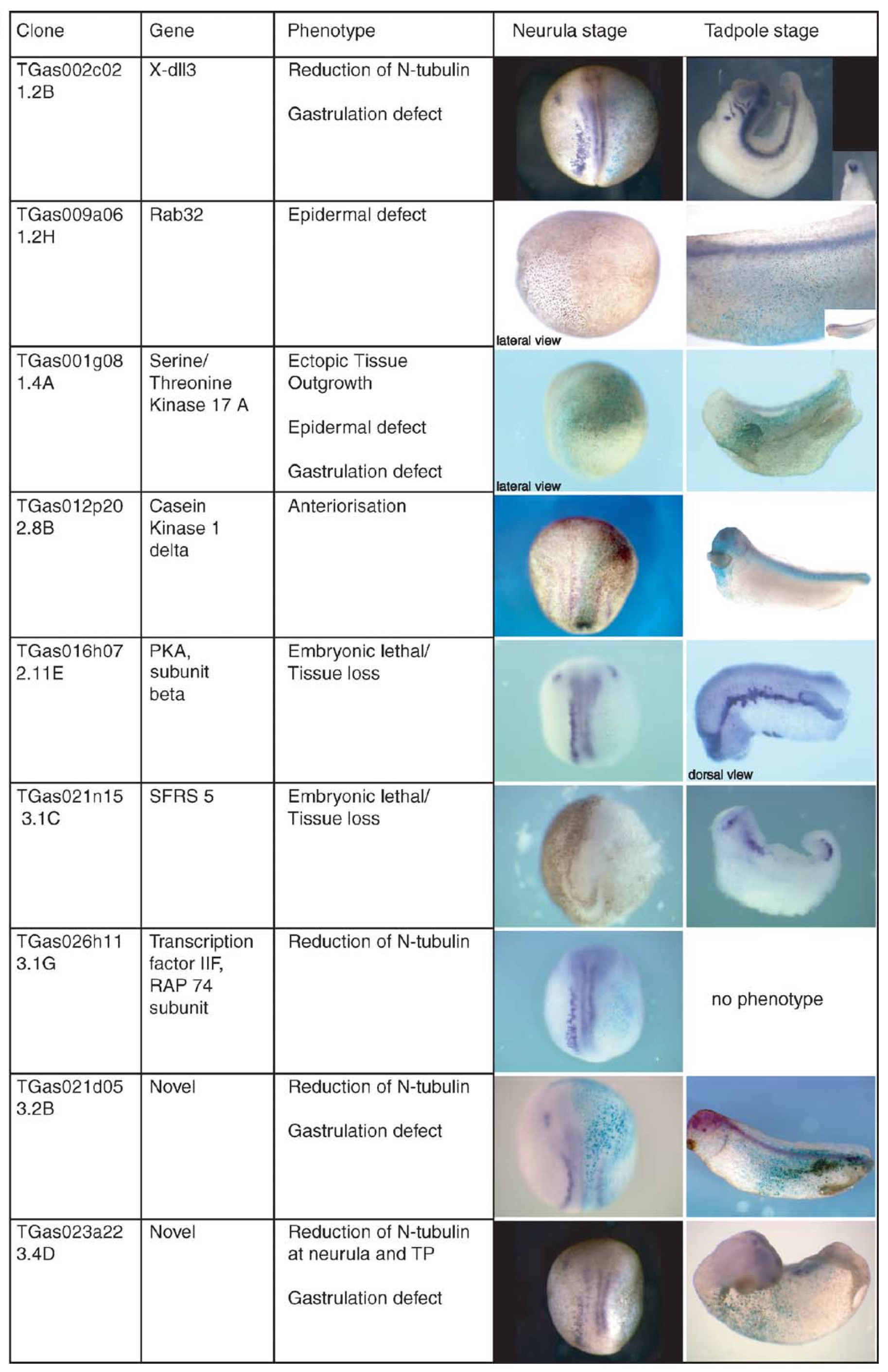 analysed at neurula and tadpole stages for changes in the neural differentiation marker N-tubulin (purple) and morphology. Unless indicated otherwise, neurula