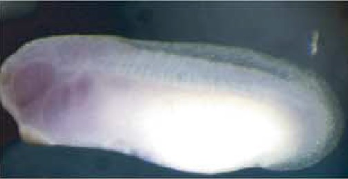 zbtb2 (zinc finger and BTB domain containing 2)gene expression in Xenopus tropicalis embryos, NF stage 17, as assayed by in situ hybridization. Anterior view: dorsal up.
