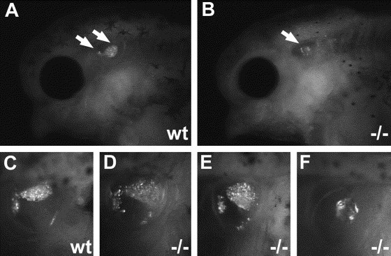 wild-type and mutant tadpoles. In B, the otic vesicle is significantly