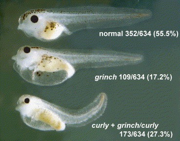 Fig. 6. grinch and curly double mutants. The panel shows normal, grinch,