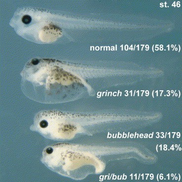 grinch, bubblehead, and grinch/bubblehead (gri/bub) phenotypes in sibling