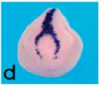 in a, b, e, f indicate the number of explants exhibiting patches of darkly stained cells per total