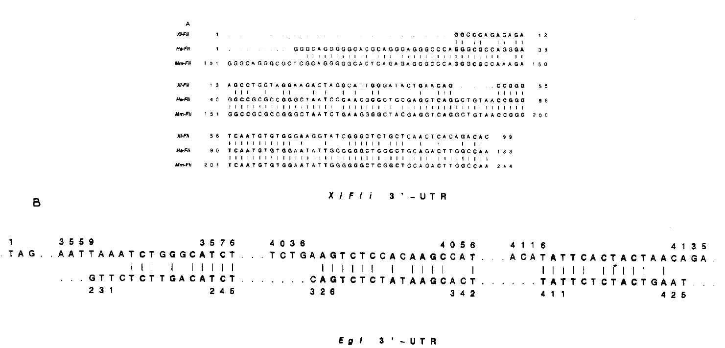region of the Xl-fli cDNA and sequences encountered in Eg mRNAs (Duval et al., 1990), which may be associated with the rapid degradation of