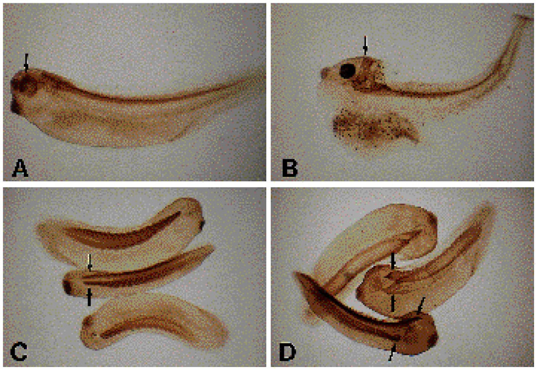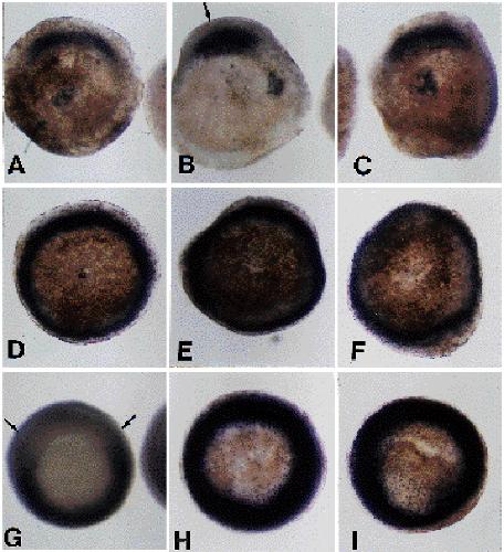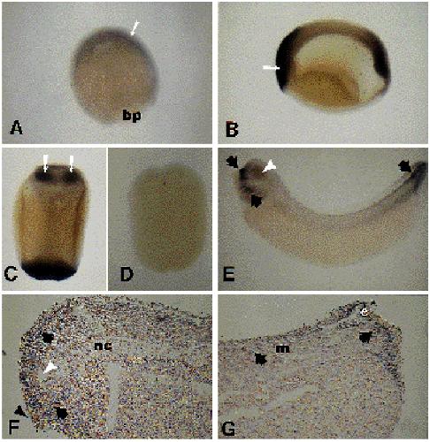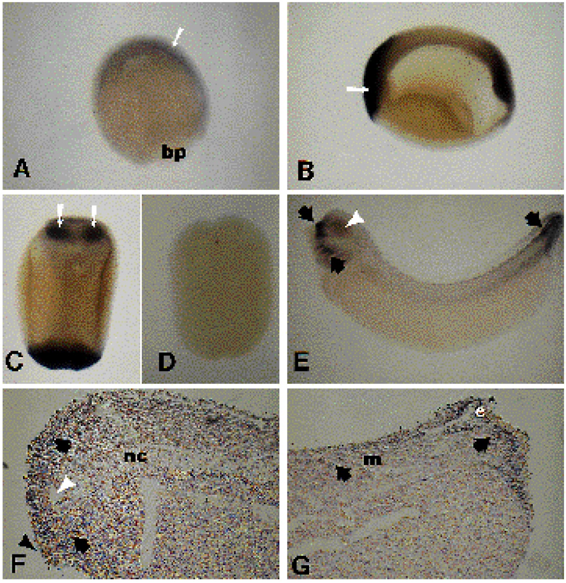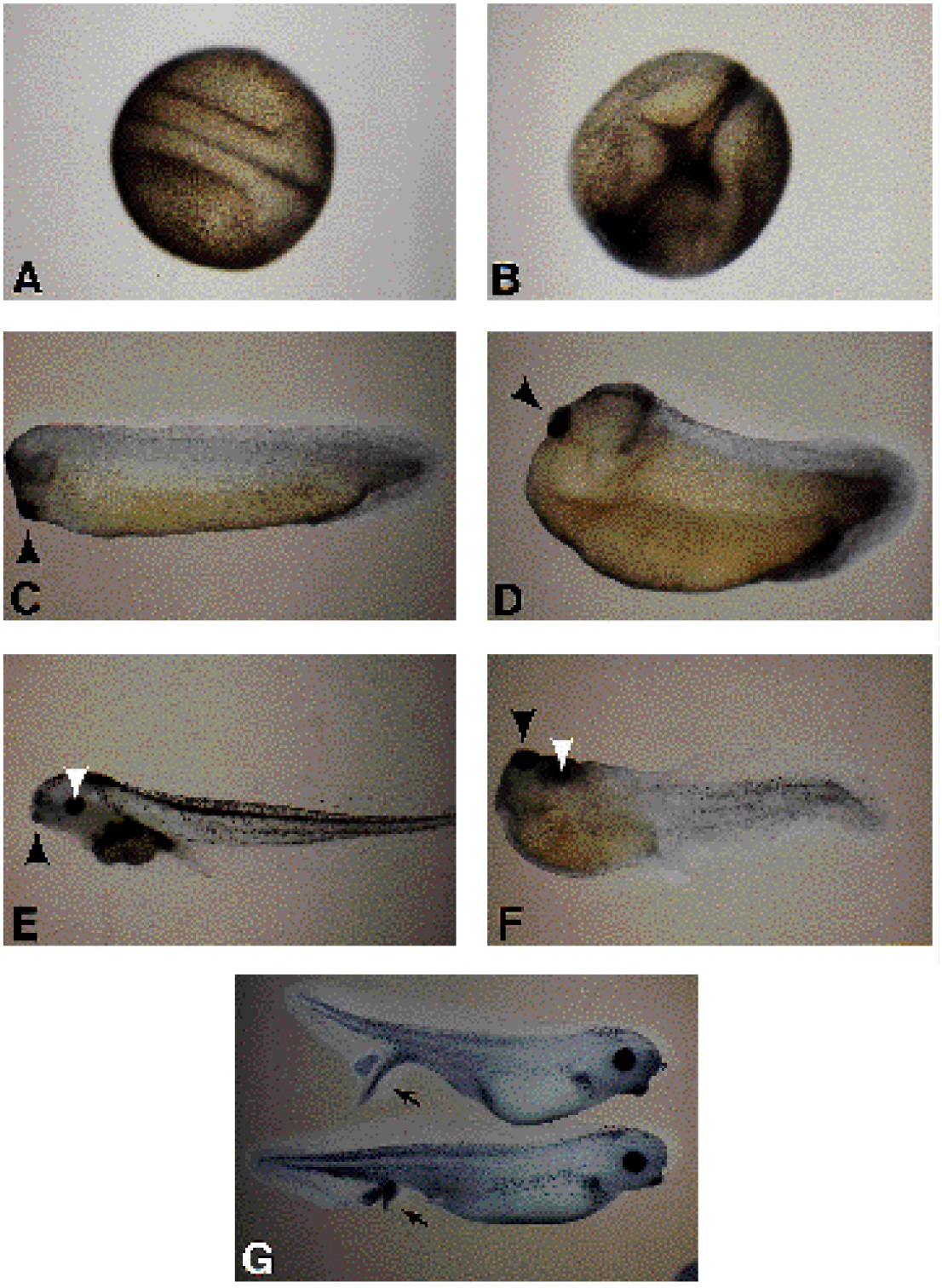 tailbud stage (C,D), or tadpole stages (E,F,G). Black