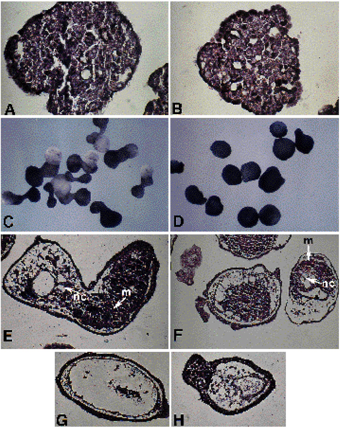 embryos (A,C) and embryos