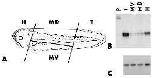 head (H), mid-dorsal (MD), mid-ventral (MV) and tail (T) regions