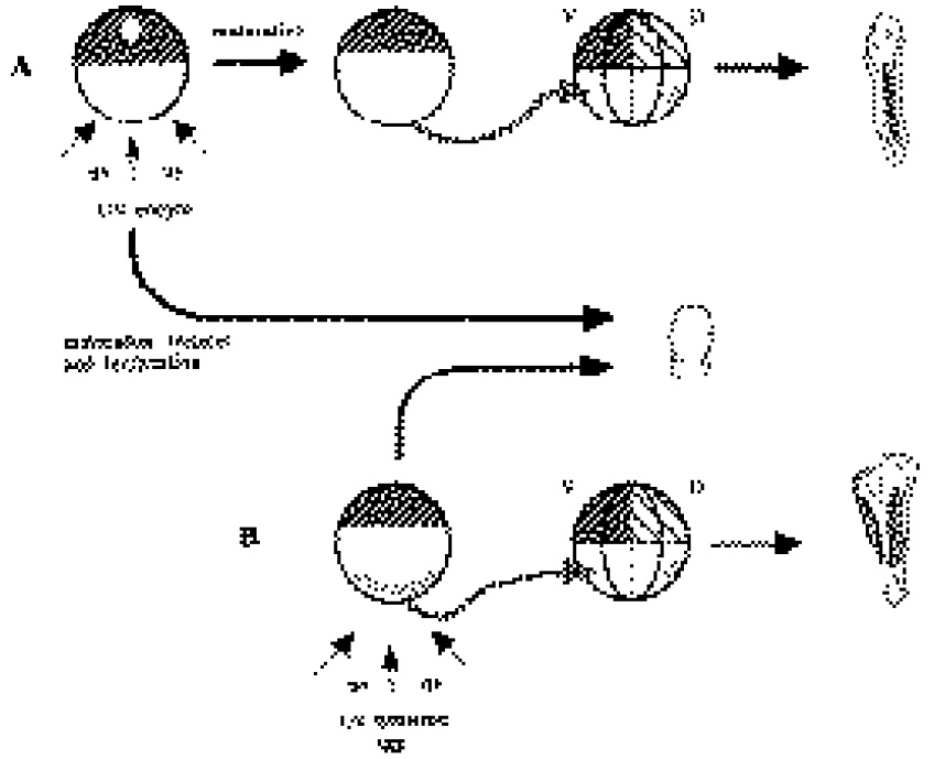 blastomeres; D, dorsal blastomeres; hatched arrow,