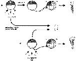 hatched arrows, transfer of cytoplasm.