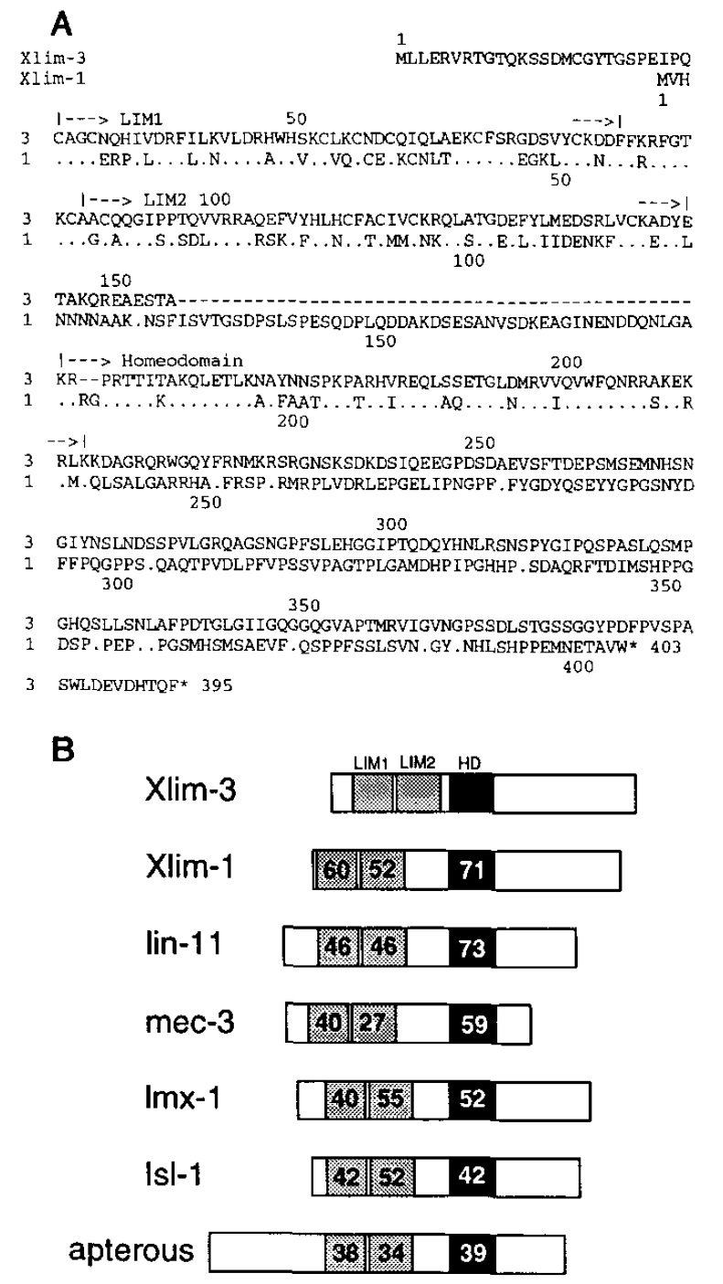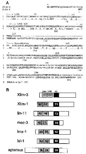other LIM proteins. (A) Alignment of Xlim-3 and Xlim-1 sequences
