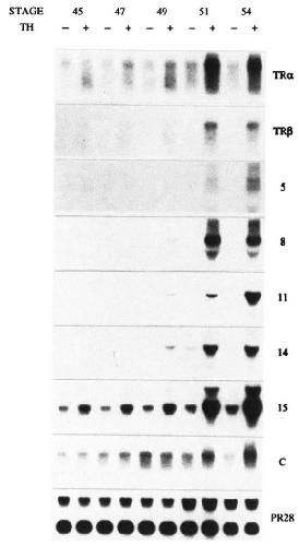 genes (17 and 19) in tadpole tails assayed by Northern blot.