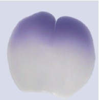 foxm1 (forkhead box M1) gene expression in Xenopus laevis embryo, assayed via in situ hybridization, NF stage 2 ( 2 cell), lateral view, animal hemisphere up.