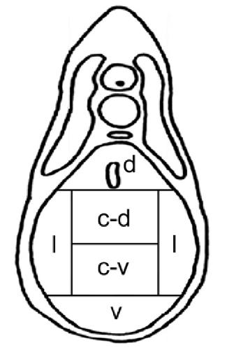 c-d, centro-dorsal part; c-v, centro-ventral part; v, ventral part.