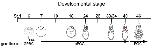 cells derived from single FDL-injected GPBC of a stage 6 embryo. pPGC were identified by the criteria described in Materials and Method. ap, animal pole; b, blastocoel; e, epidermis; gc, gut cavity; no, notochord; nt, neural tube; s, somite; vp, vegetal pole.(A) A FDL-injected embryo at stage 7. A small cluster of FDL-labeled cells is situated in the vegetal surface of the embryo. Bar, 200 μm (A) A light micrograph of (A). Two pPGC are evident in the vegetal region of the embryo. The pPGC at the left (arrow) and right sides are found to have originated from the FDL injected and uninjected GPBC, respectively. Inset: a higher