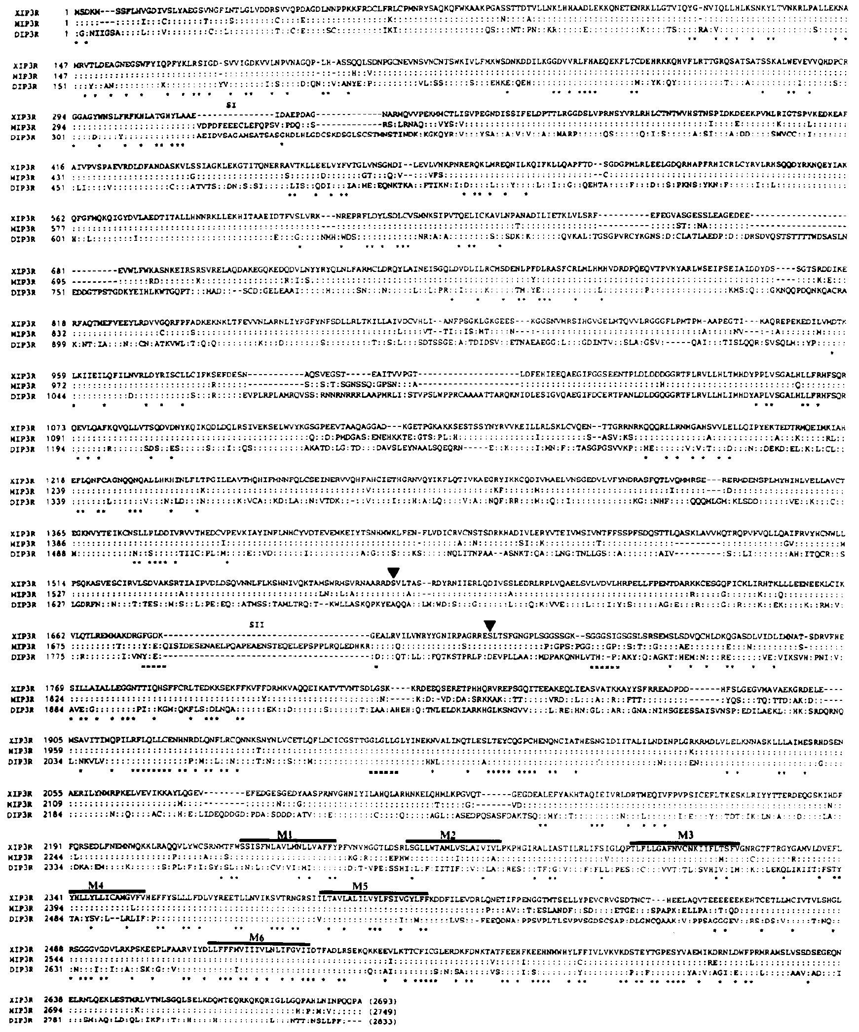 1692-1731 in mouse IPsR; Nakagawa et al., 199la). The present XIPIR corresponds to the spliced-out form of both SI and SII domains.