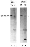is detected with lOA6. The apparent molecular size (260 kd) of the