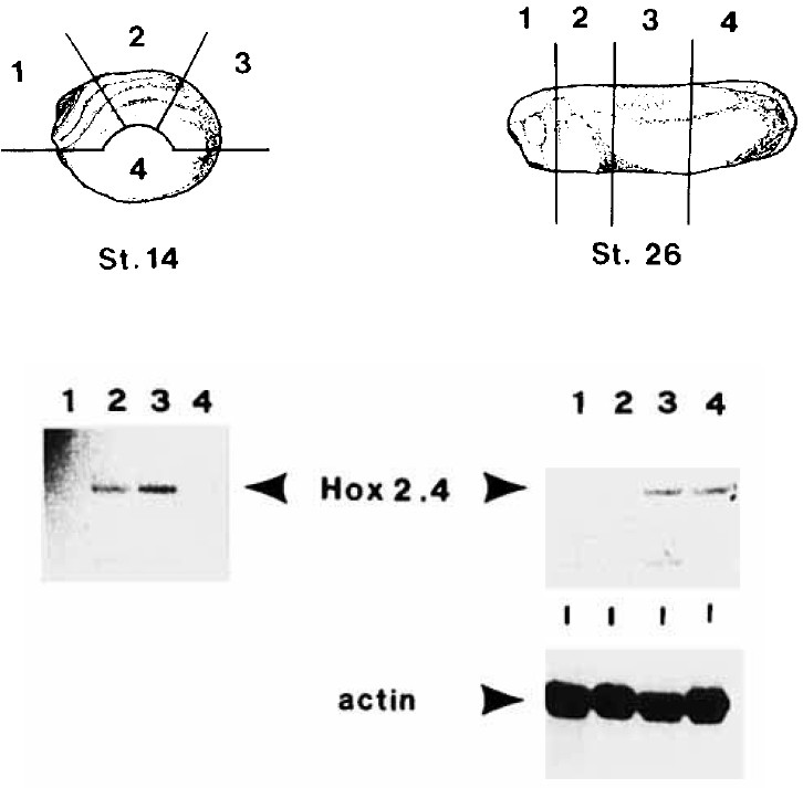 RNA pooled from five fragments. Note that Hox 2.4 transcripts are